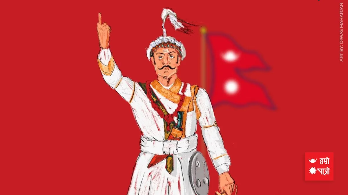 Today many attacks are being made on Prithvi Narayan Shah. He is said to be autocratic, imperialistic, suppressing and oppressing the tribal people, cutting the noses and ears of the people of Kirtipur and gathering 17 dharni noses and ears. Not only this, but even more serious and inferior blows have been inflicted on him. His statues, which have historical and archeological importance, have not only been demolished or vandalized, but he has also been promoted as a war criminal.